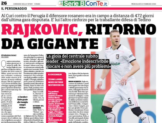 "Quattrocentosettantadue giorni per rivedere le stelle. Slobodan Rajkovic non giocava col Palermo dal novembre del 2016 contro il Milan, quasi...