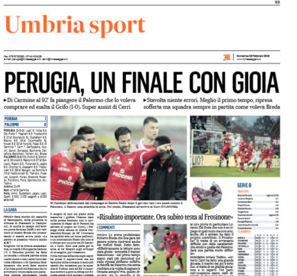 L'edizione odierna de "Il Messaggero" ha analizzato il match di ieri tra Perugia e Palermo: "PERUGIA Sarà merito del cappello...