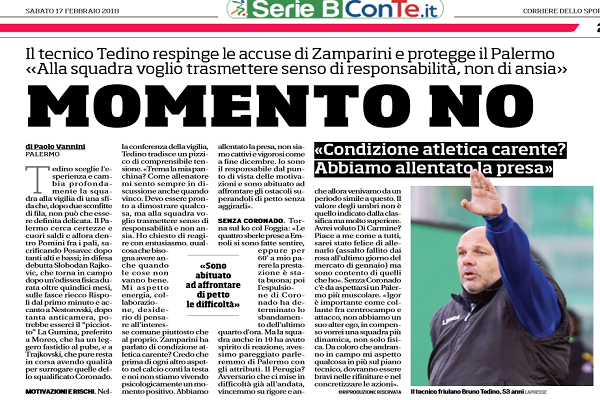 L'edizione odierna de "Il Corriere dello Sport" ha analizzato le parole di mister Tedino rilasciate ieri in conferenza. Ecco quanto...