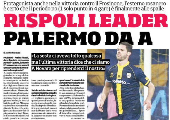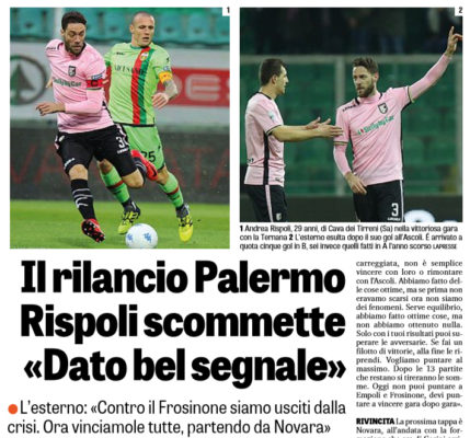 E’ intervenuto ieri in conferenza stampa l’esterno rosanero Andrea Rispoli. L’edizione odierna de "La Gazzetta dello Sport" riporta alcune delle...