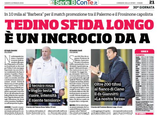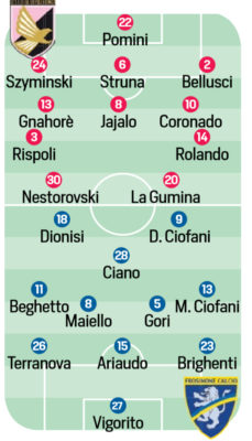 L'edizione odierna de "Il Corriere dello Sport" ha stilato le probabili formazioni di Palermo-Frosinone. Ecco quanto si legge: "Palermo Allenatore: Tedino....