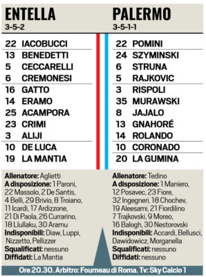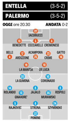 ENTELLA I dubbi di Aglietti sono solo sugli esterni. In quattro (Belli, De Santis, Gatto e Aliji) si giocano due maglie. PANCHINA...