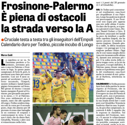 "Il Palermo è sempre alla prese con l'emergenza in difesa, Tedino getterà nella mischia Struna, che fino a martedì era...