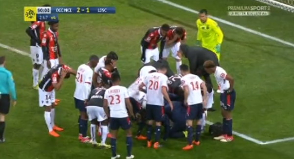 Scontro terribile durante la gara Lille-Nizza. Il calciatore Edgar lé durante il Nizza si è scontrato con l'ex Bayern Monaco Dante....