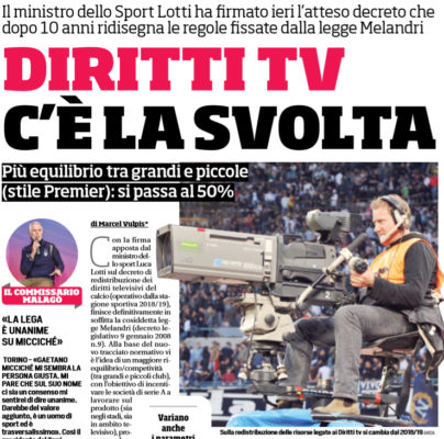 "Con la firma apposta dal ministro dello sport Luca Lotti sul decreto di redistribuzione dei diritti televisivi del calcio (operativo...