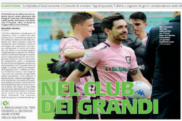 L'edizione odierna de "Il Giornale di Sicilia" ha analizzato la prestazione di Igor Coronado. Ecco quanto si legge: "Una tripletta...