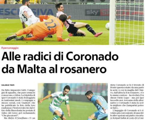 Dopo la bellissima tripletta realizzata da Igor Coronado contro il Carpi, l'edizione odierna de "La Gazzetta dello Sport" fa un...