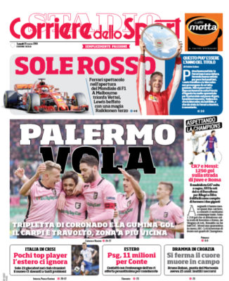 Prima pagina Corriere dello Sport: “Palermo vola, zona A più vicina”