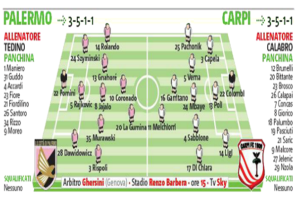 L'edizione odierna de "La Gazzetta di Modena" ha stilato le probabili formazioni del match in programma oggi tra Palermo e...