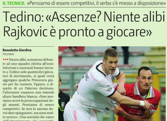 L'edizione odierna de "Il Giornale di Sicilia" ha analizzato le parole rilasciate da Bruno Tedino ieri in sala stampa in...