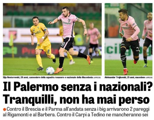 "Finora senza i nazionali al Palermo non è andata male. Due pareggi in due occasioni, prima a Brescia, alla seconda...