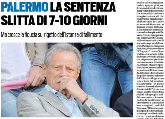 "Nemmeno l’ultima sortita della Procura cambia lo scenario, i giudici adesso devono solo decidere sull’istanza di fallimento del Palermo, che...