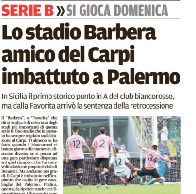"L'edizione odierna de "La Gazzetta di Modena" ha analizzato lo score del Carpi al "Renzo Barbera" di Palermo, storicamente positivo...
