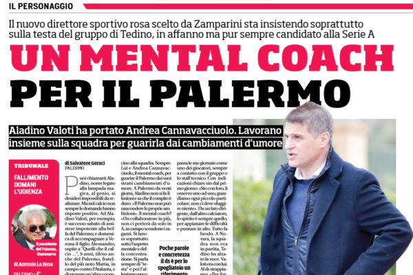 Il Ds del Palermo Aladino Valoti è vicino alla squadra e insieme a lui c'è il mental coach Andrea Cannavacciulo....