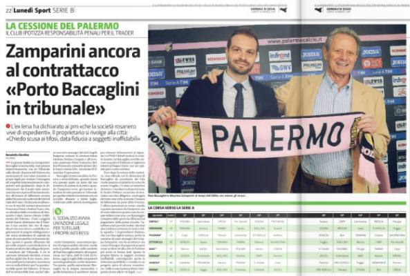 L'edizione odierna de "Il Giornale di Sicilia" ha analizzato la querelle tra Maurizio Zamparini e Baccaglini, con il patron dei...