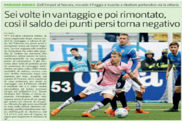 L'edizione odierna de "Il Giornale di Sicilia" l'ormai brutta abitudine della squadra rosanero di subire gol in rimonta sul finale...
