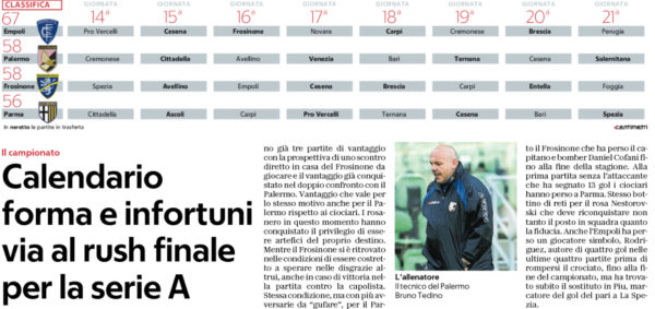 Repubblica: “Calendario forma e infortuni via al rush finale per la serie A”
