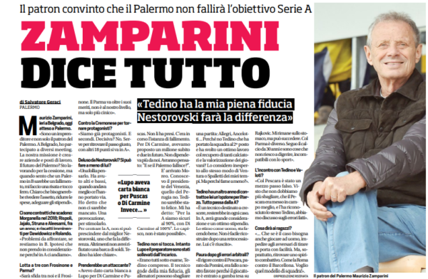 Il patron del Palermo Maurizio Zamparini intervistato da il "Corriere dello Sport", ha parlato della lotta promozione, di Tedino, di...
