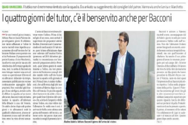L'edizione odierna de "Il Giornale di Sicilia" ha analizzato la brevissime esperienza di Bacconi in rosanero, "esonerato" insieme a Tedino....