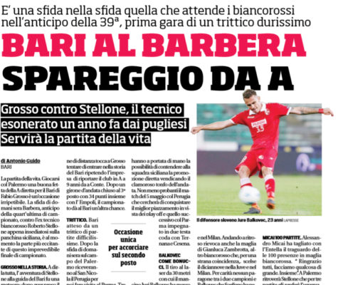 Domani alle 20.30 si giocherà, allo stadio "Renzo Barbera", Palermo-Bari, gara valida per la 39^ giornata del campionato di serie...