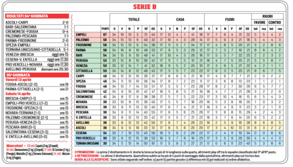 Corriere dello Sport: “Serie B, il programma e la classifica aggiornata”