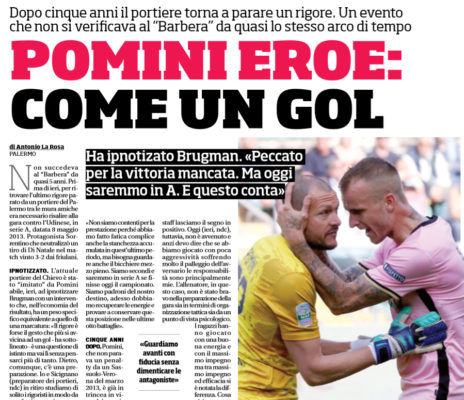 "Non succedeva al “Barbera” da quasi 5 anni. Prima di ieri, per ritrovare l’ultimo rigore parato da un portiere del...