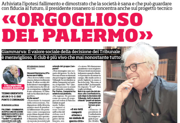 "Giovanni Giammarva, il Palermo non è fallito. «Non doveva fallire come emerso dal provvedimento finale. Il valore sociale della decisione...