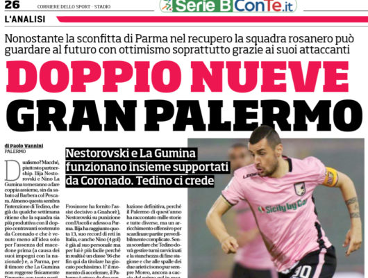 "Dualismo? Macché, piuttosto partnership. Ilija Nestorovski e Nino La Gumina torneranno a fare coppia assieme, sin da sabato al Barbera...