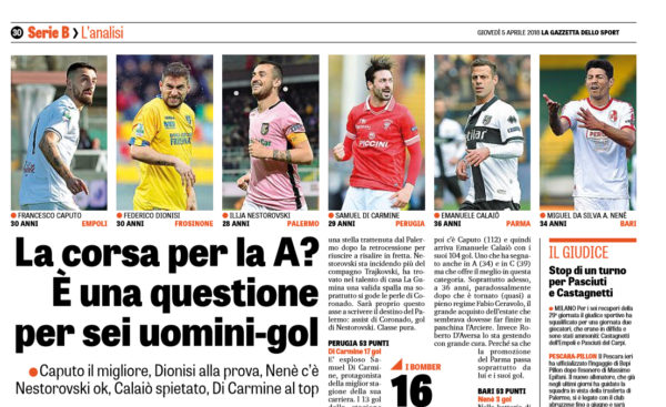 Gazzetta dello Sport: “La corsa per la A? È una questione per sei uomini-gol. Nestorovski…”