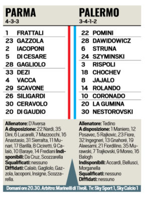Il alto le probabili formazioni di Parma-Palermo in programma domani alle 20.30 per il recupero della 29^ giornata del campionato...