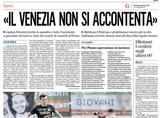 "«L’attuale quinto posto? Battiamo il Palermo e proiettiamoci ancora più alto». Esorta il Venezia a pensare sempre un po’ più...