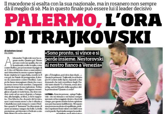 Corriere dello Sport: “Palermo, l’ora di Trajkovski”