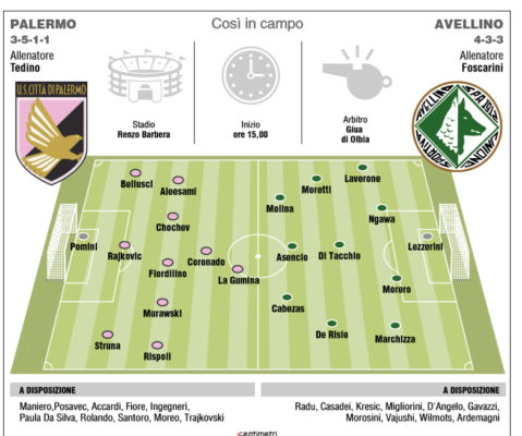 In alto, ecco le probabili formazioni di Palermo-Avellino proposte nell'edizione odierna di "Tuttosport".