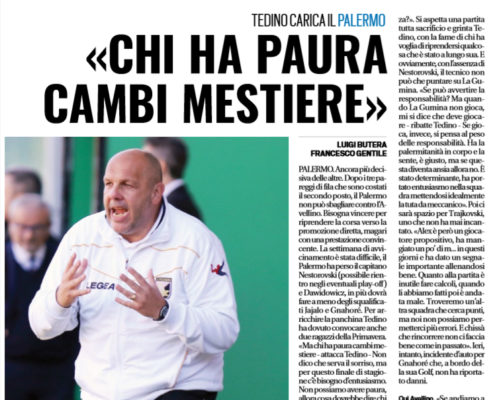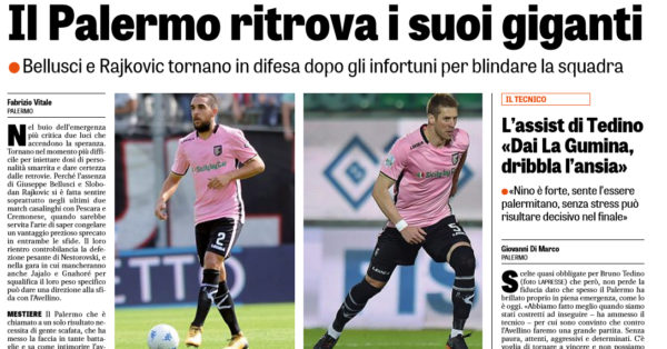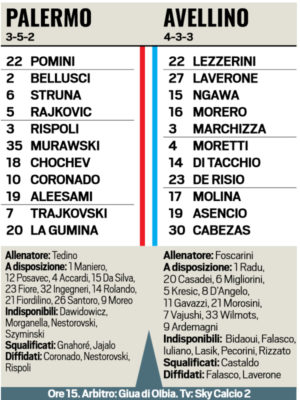 L'edizione odierna de "La Gazzetta dello Sport" propone le ultime notizie e le probabili formazioni di Palermo-Avellino. PALERMO Senza Nestorovski ma...