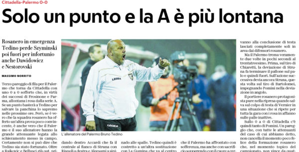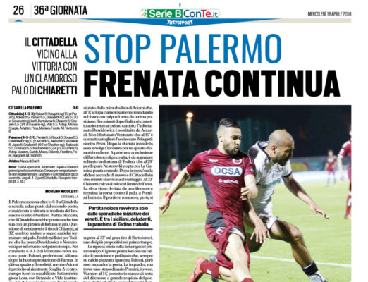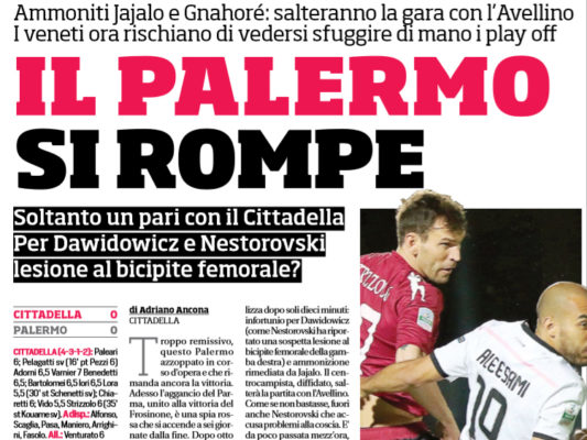 "Il Palermo non va oltre lo 0-0 a Cittadella e scivola a due punti dal secondo posto, considerata la vittoria...