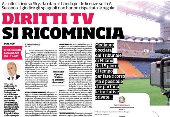 "E ora è caos totale. Il Tribunale di Milano ha bloccato definitivamente il bando di Mediapro per la vendita dei...