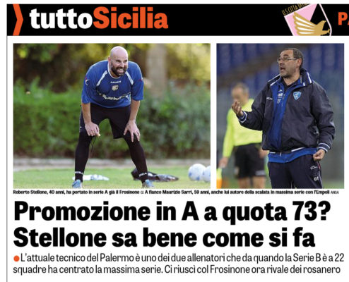 "È successo soltanto due volte, ma se succede sarebbe un déjà vu per Roberto Stellone. La promozione diretta del Palermo...