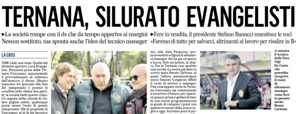 Il Messaggero: “Ternana, silurato Evengelisti. Fere in vendita, il presidente Stefano Ranucci smentisce le voci «Faremo di tutto per salvarci, altrimenti al lavoro per risalire in B»”