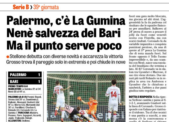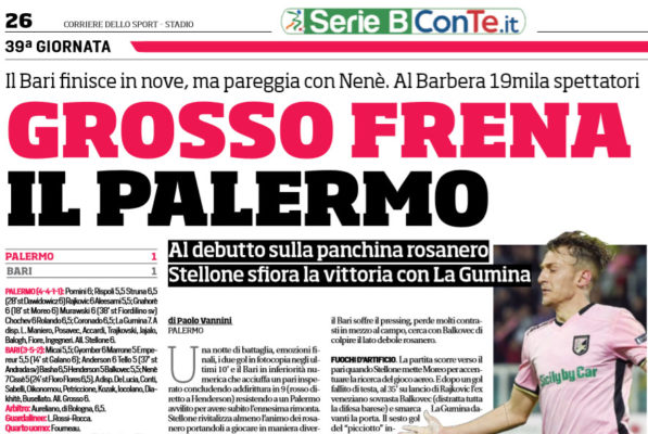 Gazzetta dello Sport: “Palermo, pareggio e rimpianti «Ma i ragazzi hanno dato tutto»”
