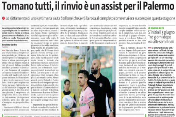 "Una settimana di lavoro in più. Anzi sei giorni per essere esatti. Il Palermo entrerà in gioco mercoledì 6 giugno...