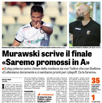 "Il Palermo si prepara con fiducia ai play off. Trasuda ottimismo l’italiano di Murawski: «Siamo pronti - ha dichiarato al...