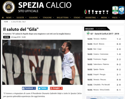 Attraverso una lettera apparsa sul sito ufficiale dello Spezia, Alberto Gilardino ha voluto salutare il club ligure e la piazza annunciando l'addio...