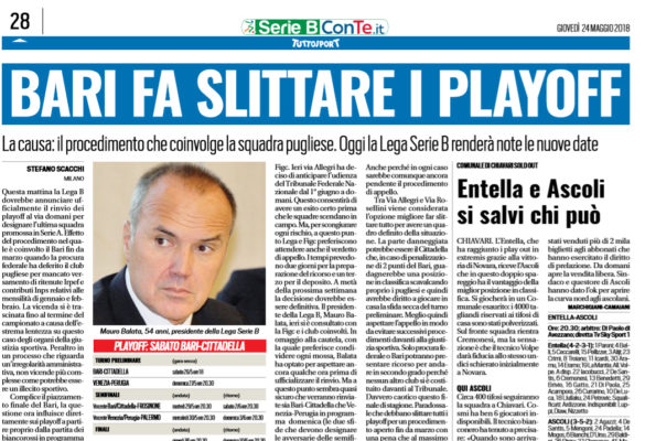 "Questa mattina la Lega B dovrebbe annunciare ufficialmente il rinvio dei playoff al via domani per designare l’ultima squadra promossa...