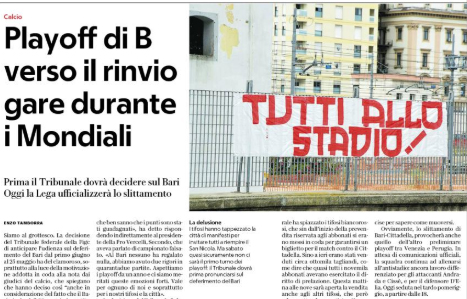 L'edizione odierna de "Il Giornale di Sicilia" ha analizzato quella che sarà la decisione ufficiale della Lega Serie B, ovvero...
