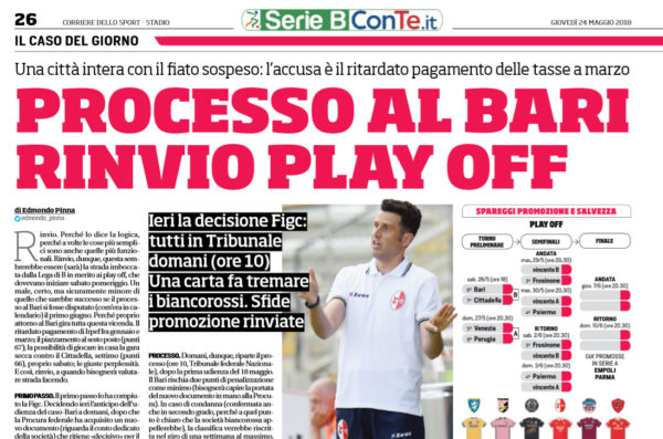 "Siamo al grottesco. La decisione del Tribunale federale della Figc di anticipare l’udienza sul deferimento del Bari dal primo giugno...