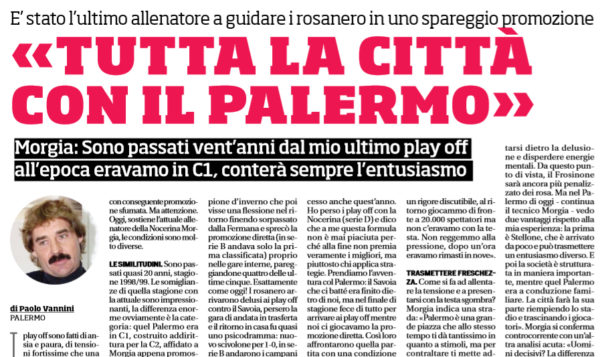 Corriere dello Sport: “Morgia: «Tutta la città con il Palermo. Noi contro il Savoia…»”