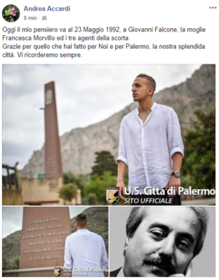 Il difensore del Palermo, Andrea Accardi, tramite il proprio profilo Facebook ha voluto mandare un messaggio per ringraziare Giovanni Falcone, la...