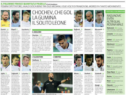 L'edizione odierna de "Il Giornale di Sicilia" ha stilato le pagelle del match vinto ieri dal Palermo contro la Salernitana....