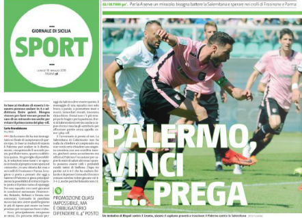 Giornale di Sicilia: “Palermo, vinci…e prega: l’obiettivo reale è evitare il 5° posto”