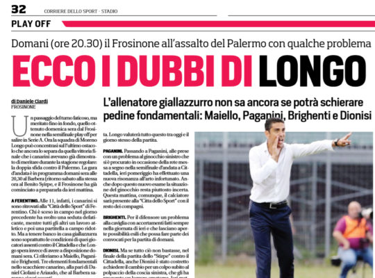 "Un passaggio del turno faticoso, ma meritato fino in fondo, quello ottenuto domenica sera dal Frosinone nella semifinale play off...